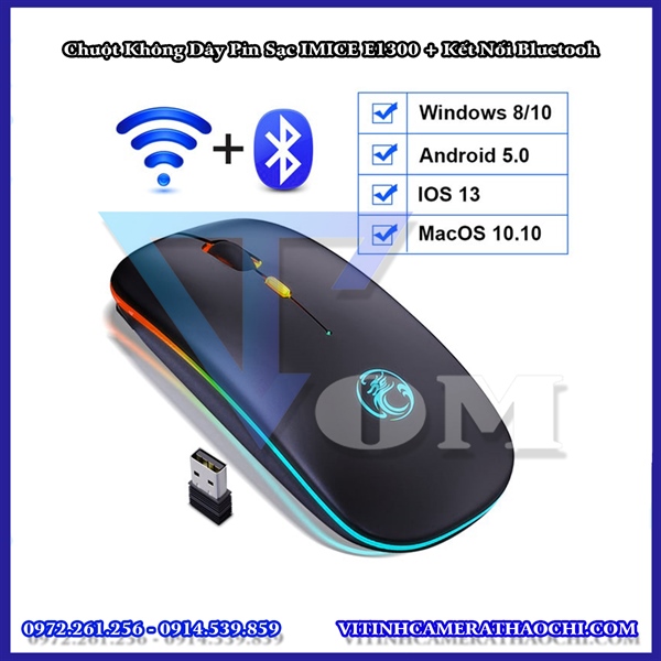 Chuột Không Dây Pin Sạc IMICE E1300 + Kết Nối Bluetooh
